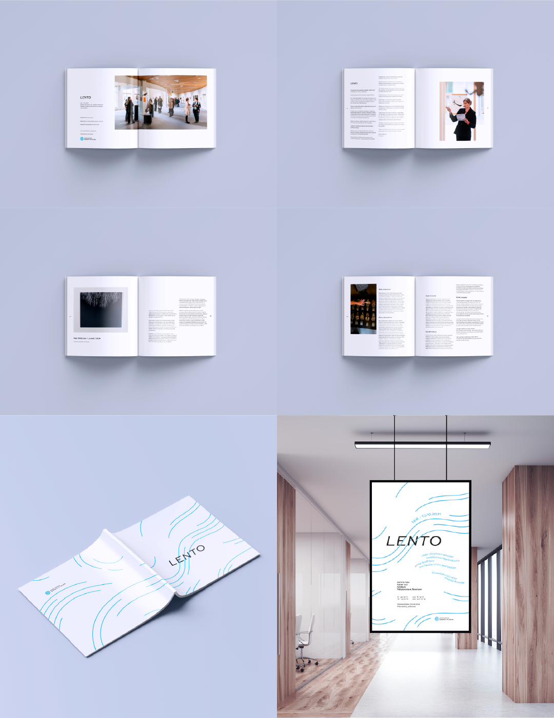 The exhibition’s name and theme was LENTO (FLIGHT), so my approach was with lots of space, light colours and airy typography. These went also hand in hand with letting the artworks shine and visuals not stealing the spotlight.