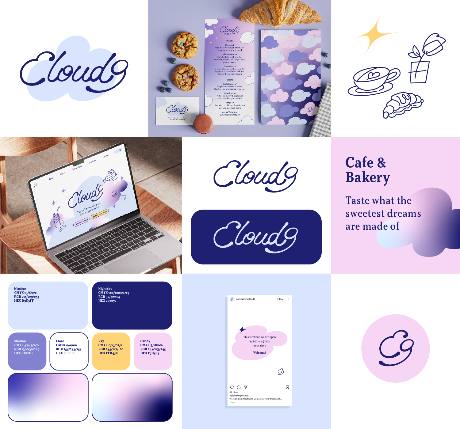 The concept was inspired by the moment you fall asleep, and the visuals are guided by two key words: dreamy and elegant. The cafe is geared towards tourists and curious minds, anyone who wishes to rest easy for a bit. The spacious and clean designs carry a luxurious and chill feeling. The logo’s letter forms are as if piped from liquid chocolate and the illustrations like cleaned sketches as if from clear dreams.