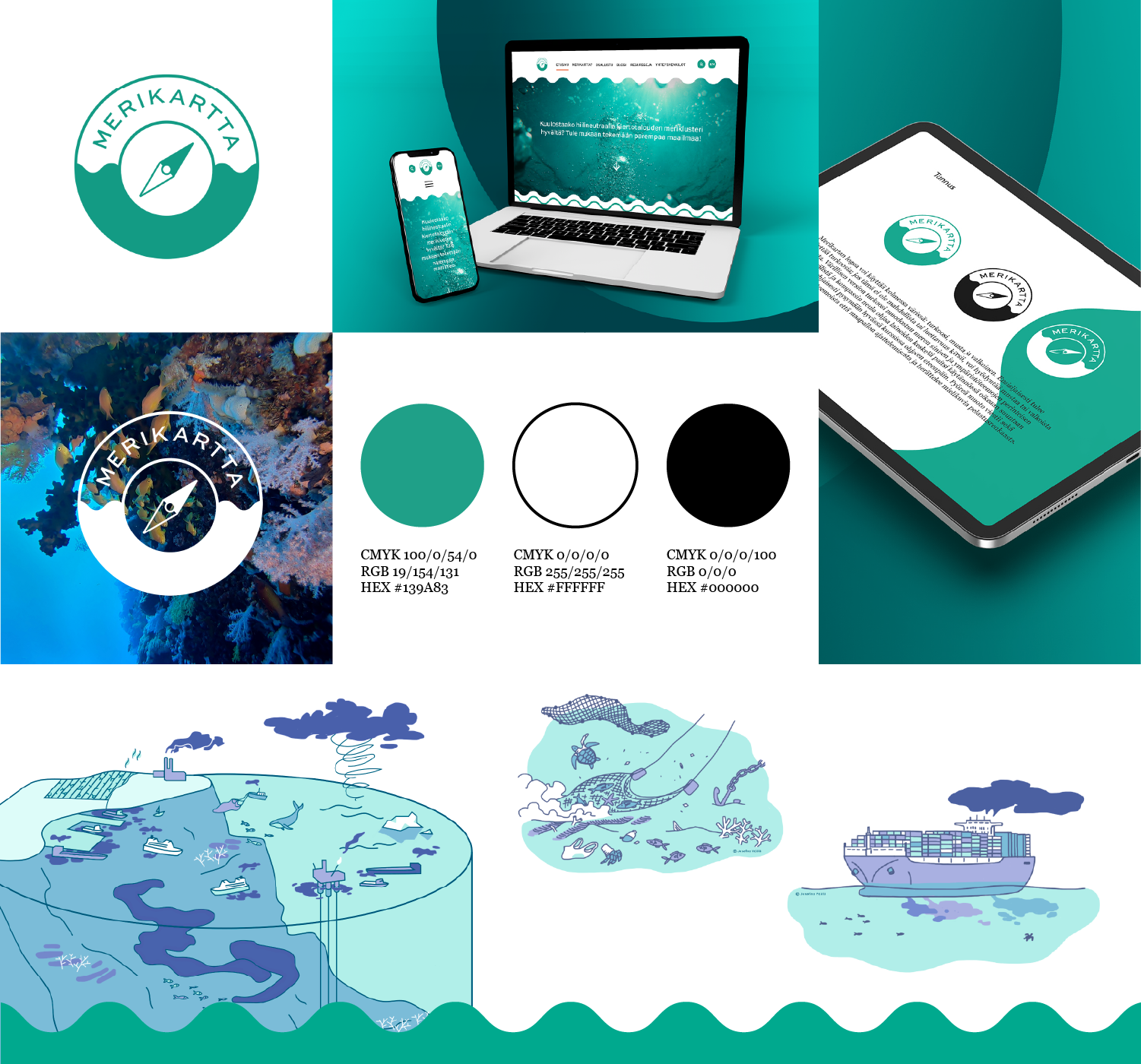 The Merikartta project resulted in an ecosystem that was formed to connect professionals of different fields related to seafaring and the purpose was to tackle environmental challenges of the seas. Purpose of the visuals was to make the project more tangible for everyone involved.